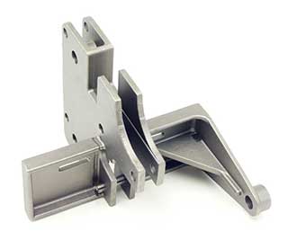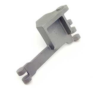 Complex casting used in power-and-free conveyor systems. Alloy: 1075 carbon steel, Weight: 5.25 lb.