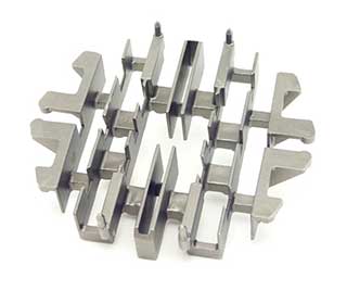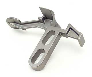 Casting illustrating the complex geometries and near-net shape capability of investment casting. This part was converted to a casting from a welded fabrication. Typical alloys for this type of application are 1020, 8620, 8630 and 4140 steel.