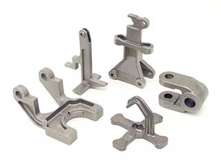 Various castings illustrating the complex geometries and near-net shaped capabilities of investment casting by Acra Cast. Alloys range from 1020 mild steel to low alloy steels, tool steel, and stainless steel.